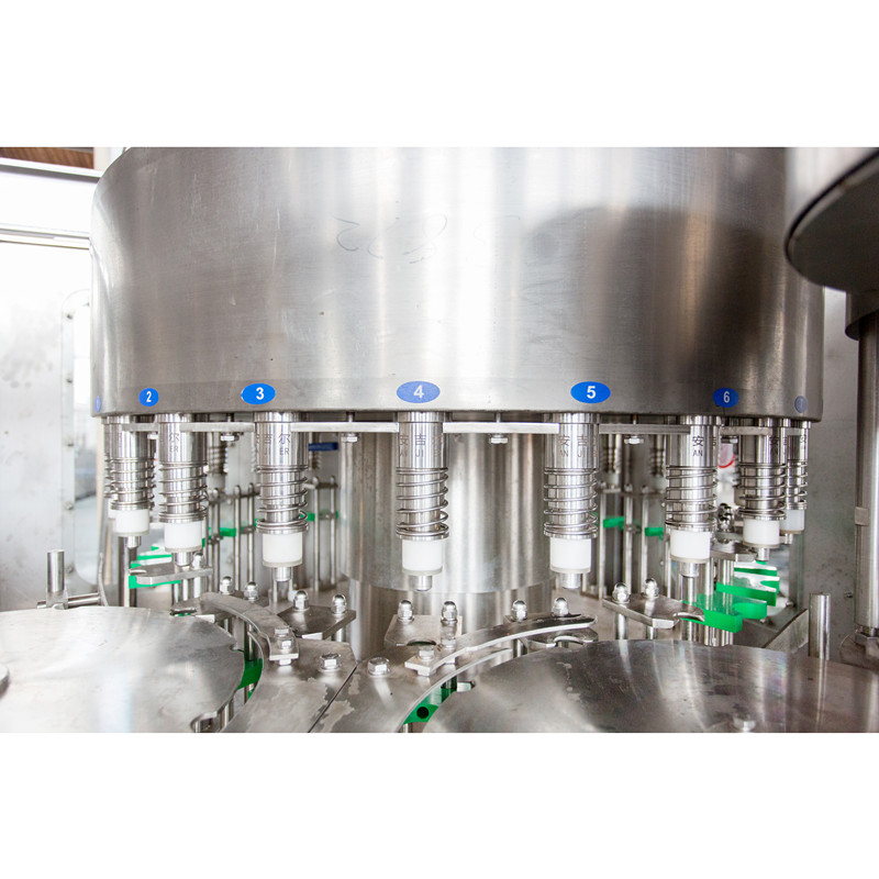 XGF24-24-8三合一灌裝機(jī)主要用于礦泉水、純凈水的灌裝作業(yè)。本機(jī)將沖洗、灌裝、旋蓋三功能合在一個(gè)機(jī)體上,全過程實(shí)現(xiàn)自動(dòng)化。適用于聚酯瓶、塑料瓶,各部分的適用瓶型調(diào)整采用手柄轉(zhuǎn)動(dòng)實(shí)現(xiàn),輕松自如,簡(jiǎn)便快捷。灌裝方式采用了新型的常壓灌裝,使灌裝速度更快更穩(wěn)定,所以與同規(guī)格的機(jī)器相比本機(jī)的產(chǎn) 量更高,效益更大。本機(jī)采用了先進(jìn)的可編程控制器(PLC)控制機(jī)器的自動(dòng)運(yùn)行,進(jìn)瓶鏈道采用變頻器調(diào)整,與主機(jī)變頻器相互配合使進(jìn)瓶運(yùn)行更穩(wěn)定可靠,光電檢測(cè)各部件的運(yùn)行狀況。自動(dòng)化程度高,操作簡(jiǎn)便。是礦泉水、純凈水生產(chǎn)廠家理想的首先設(shè)備。